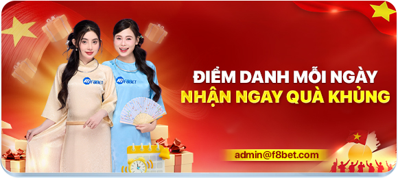 Chào mừng đại lễ 30/04 và 01/05, F8BET dành tặng chương trình khuyến mãi “Điểm Danh Mỗi Ngày – Nhận Ngay Quà Khủng” cho tất cả hội viên. Mỗi ngày chỉ cần nạp từ 300 điểm và phát sinh từ 2,000 điểm cược hợp lệ bạn sẽ nhận ngay 18 điểm thưởng.